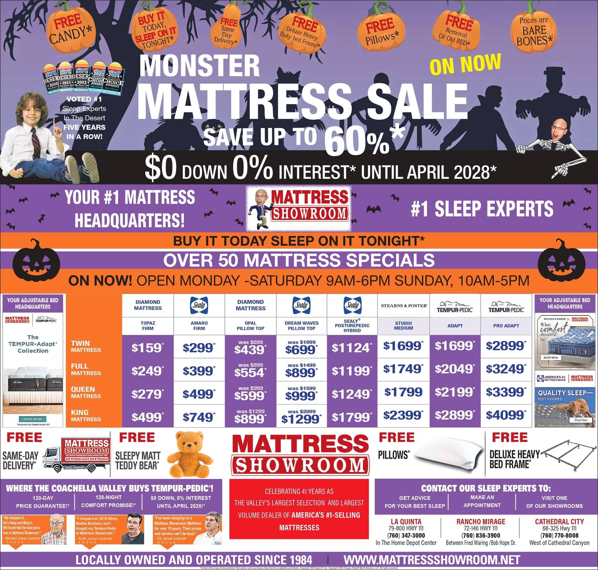 At Mattress Showroom, we’re honored to be your trusted local sleep experts, Voted Best of Desert Community Choice Awards 4 years in a row! We understand that a good night’s sleep is essential to your well-being, and our mission is to provide the very best mattresses in Palm Springs, Cathedral City, Rancho Mirage, Palm Desert, and La Quinta.