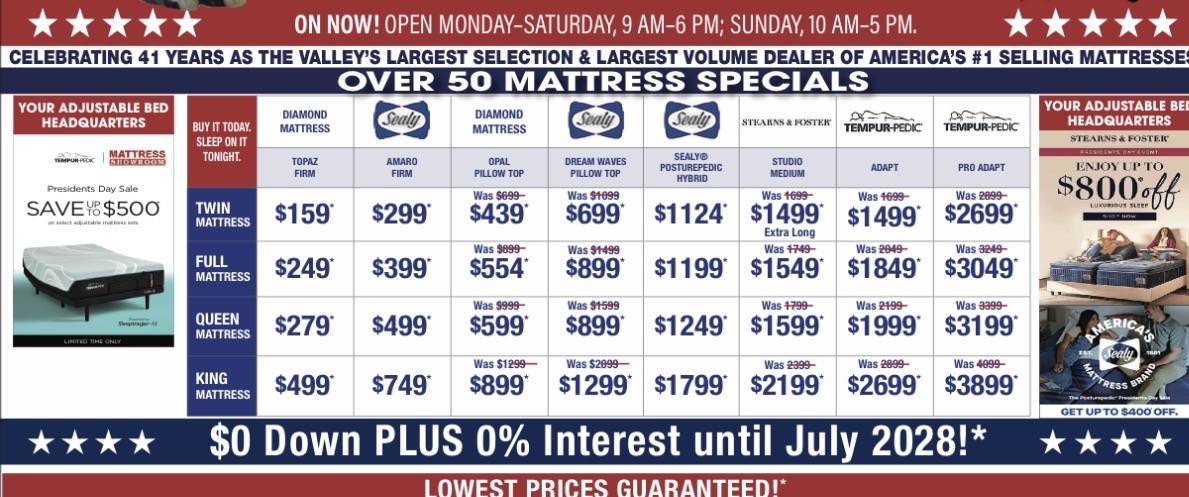 That’s why we offer an extensive selection of top-quality mattresses from leading brands. We are the premier destination for Tempur-Pedic, featuring their full line of adaptive, pressure-relieving beds. We also proudly carry the timeless luxury of Stearns & Foster, the trusted innovation of Sealy, and more.